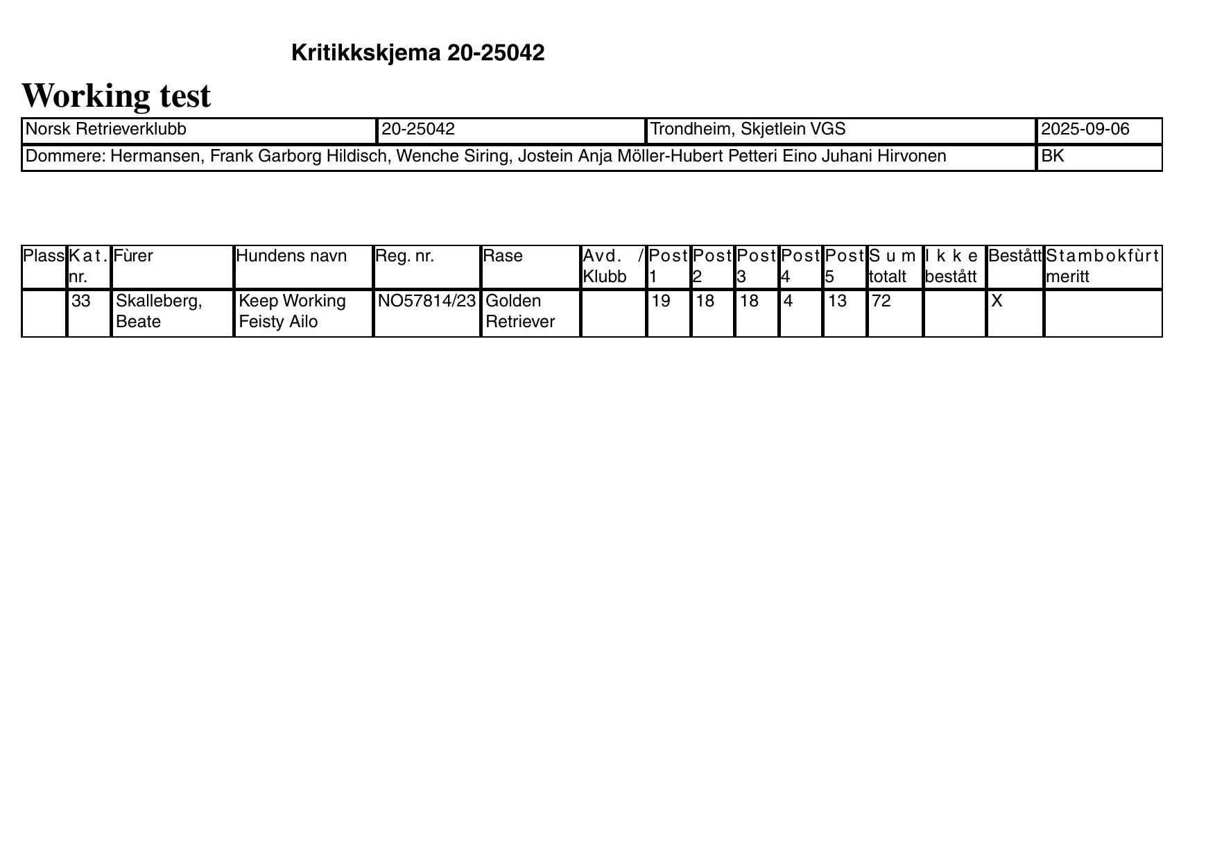 Beate og Keep Working Feisty Ailo (Keep Working Catch Candela / Alsterbygdens Torpare "Kvick") har vært med på online working test gjennom vinteren 24/25, arrangert av Raseråd Golden. De har fått ulike oppgaver relatert til retrieverjakt (apportering og dirigering) de har filmet, sendt inn og fått poeng for disse. Hvem hadde da trodd at de skulle få full pott på alle oppgavene! Det hele endte med delt 1. plass etter en ekstra finale oppgave. Dette var utrolig moro!! For en ekvipasje dere har blitt! Gleder meg til å følge dere videre!