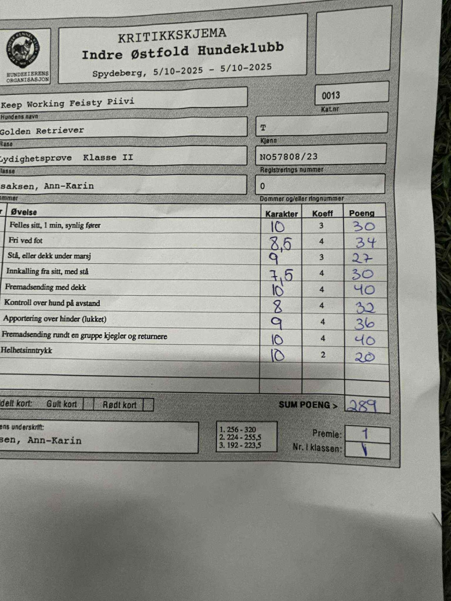 Keep Working Feisty Piivi har også debutert i kl 2 LP. Og for en debut det ble. Hundefører Hege Lindahl var supernervøs, og selv om nervøsiteten tok dem litt - så gikk de allikevel til 289 poeng, 1. premie og 1. plass! Hvor skal dette ende?! Gratulerer så mye. Vi er mektig imponert.